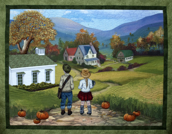ZOOM In and see how Joyce Saia's "Kelmscott Manor" recreates a quilt made by Jane Burden Morris, the wife of William Morris. Shown in Houston, this quilt combines the magic of William Morris designs with fantastic quilting artistry.