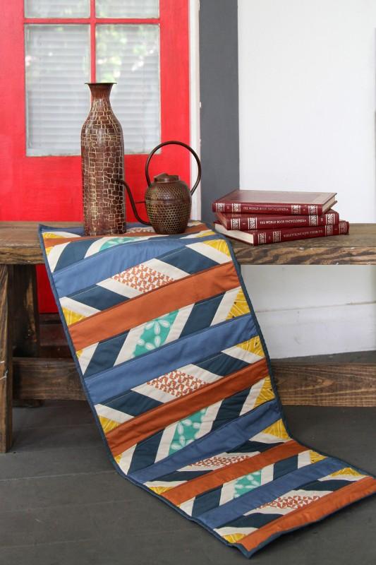 Put together this quick table runner with FREE instructions by Pat Bravo at WeAllSew.com. The stripes do all the work, so you won't have to. It measures 15" x 43" and features Pat's Artisan fabric, but you could choose to use whatever you have on hand.