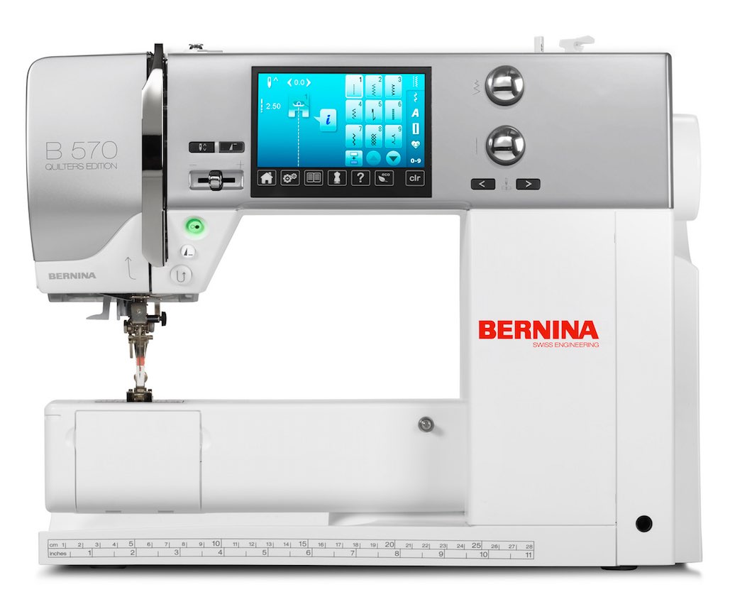 The B 570 QE is a genuine all-rounder that can sew, quilt and embroider. The touchscreen makes changing from sewing to embroidery mode a breeze. There are 50 embroidery designs to choose from, and you can upload your own embroidery designs via a USB connection. The designs can be edited right on the touchscreen with the Rotate, Mirror, Rescale, and Color Change functions.