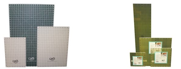 Select Cutting Mats! These self-healing, multilayer mats are usable on both sides, with versatility in mind. One inch lines with two sets of corresponding numbers are placed around the perimeter of the mat and read left to right AND right to left – never lose your place or have to count backwards!