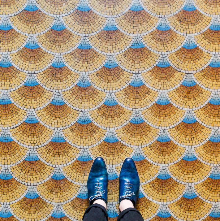 Erras told The Creators Project. "There I found some beautiful mosaic floors and while walking through the monument I started taking some pictures of these mosaic floors and included my feet as a reference that it is actually a floor. I work a lot in Paris, where I shoot Interiors, and when I came back to Paris I started noticing all these different colourful tiles and mosaic floors in hallways, restaurants, galleries and cafes.”