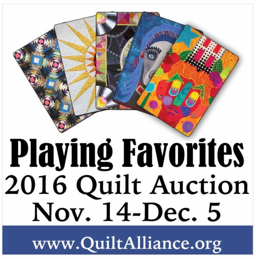 The 10th annual Quilt Alliance Auction is underway. Please help multiply the generosity of their donating artists by bidding on your favorite quilts. This year, they are using Benefit Bidding and the opening bid is $75 for each quilt. The quilts will be auctioned in two groups and auction dates and times are: