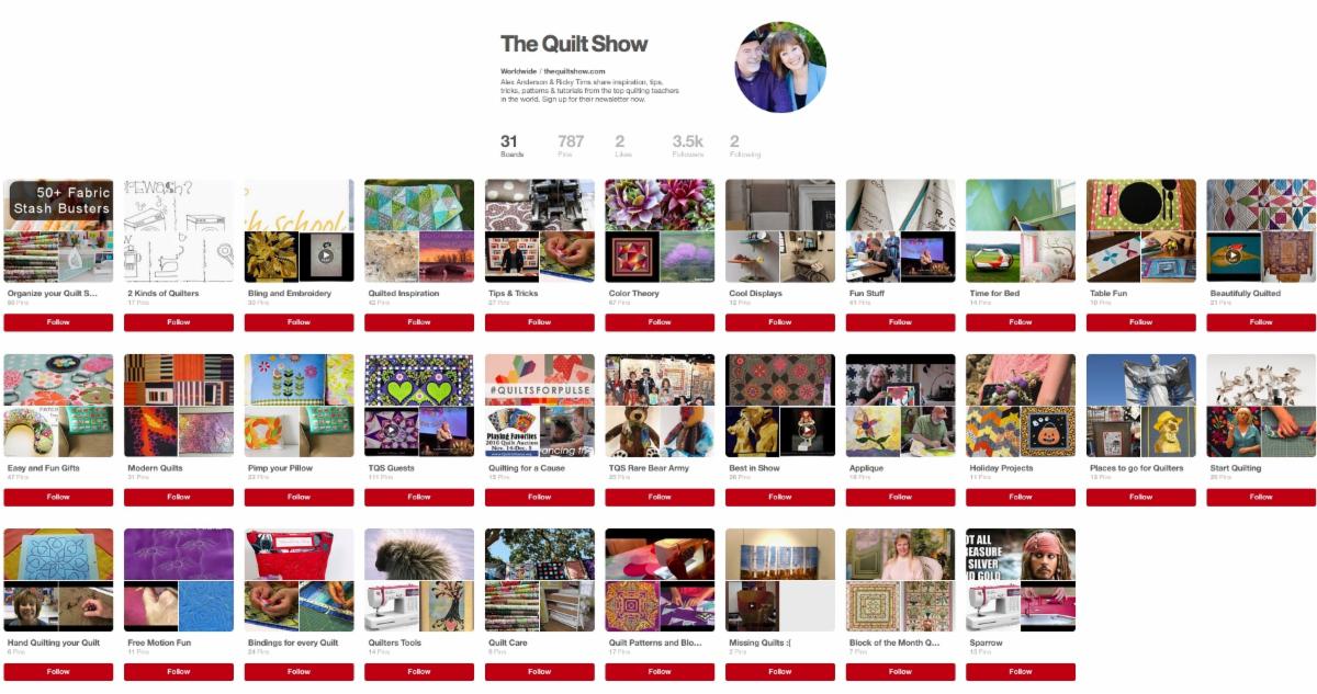 You can even Pin our Newsletter articles to your own Pinterest Boards! It’s an easy, fast and fun way to “Follow the Boards” that interest you most and to share TQS with other Quilters. Want to see more? Let us know what you think is missing from TQS on Pinterest.