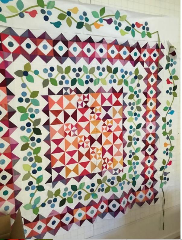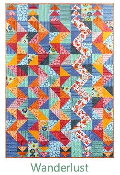 As all quilters know, triangles CAN be tricky, and YOU can learn a whole lot more about various triangles in Alex's Triple Triangle Tricks class March 17, 18, 19 at Alden Lane. It's a hands-on, three-day class in which you will learn shortcuts and easy ways to conquer triangles, when you should use the different triangles and magic cutting numbers, bundled with oodles of tricks! You'll make different kinds of triangle-based blocks and design your own masterpiece. Below is Wanderlust, made of two types of triangles. There are still a couple of spaces available, so sign up today by calling 925-447-0280 (students will also receive a one-month free membership to TQS).