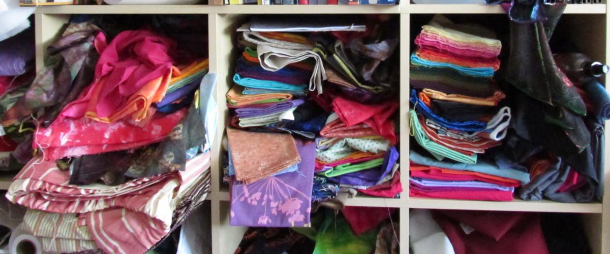 Teri Lucas has a simple trick to fold fabric so that it will fit properly on your shelf. Bonus: it will give you room for more fabric. Teri's blog is the first stop on the Spring Clean Your Studio Blog Hop 2017 hosted by Cheryl Sleboda of Muppin.com.