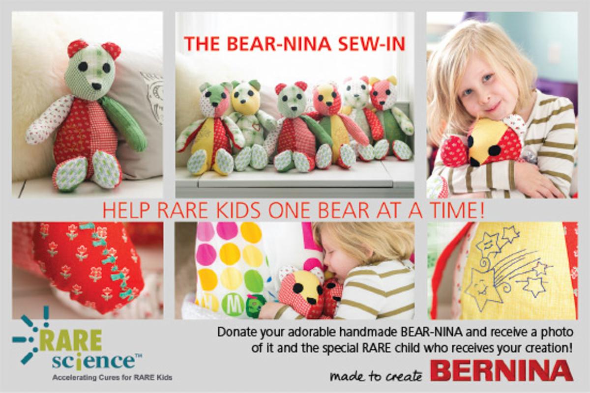 Many of you at TQS are familiar with the RARE Science and RARE Bears (click here to learn more). At the beginning of this year, BERNINA announced their partnership with RARE Science, aptly titled the BEAR-NINA Sew-Ins. The events are held at local BERNINA Stores who provide teachers and resources to help make BEAR-NINAs for the cause.