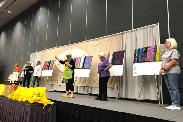 "Being a solitary and plodding quilter, I loved the Iron Quilter Challenge—a fast-paced spectator sport—on the Monday night of Quilt Festival. Six teams of five, led by a quilting celebrity, were given seven yards of fabric and two hours to complete a quilt top."