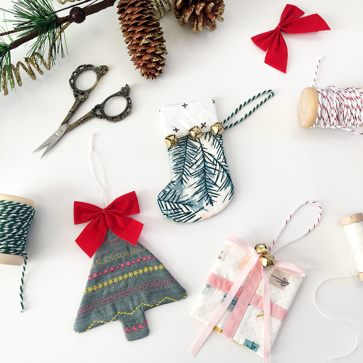 Have a few scraps and a few bits of ribbon? Why not make some "quilty" holiday ornaments? They are fast and fun and also a great way to take advantage of some of those fancy stitches on your sewing machine. Art Gallery Fabrics over at WeAllSew.com has a quick tutorial just for you.