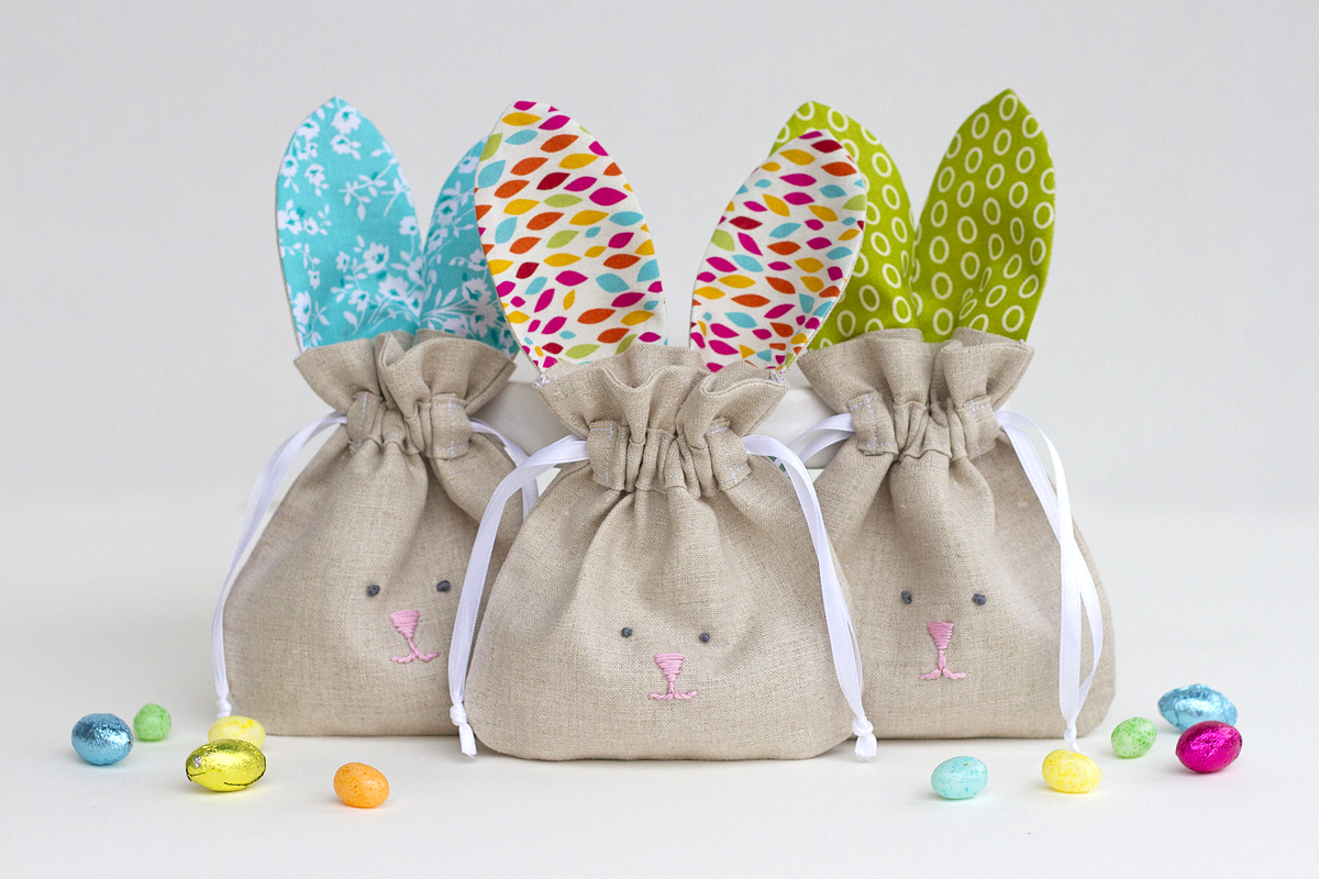 Ashley from Make It & Love It and WeAllSew is sharing these simple Drawstring Bunny Bags that are really quick to sew up…and are perfect for this time of year!