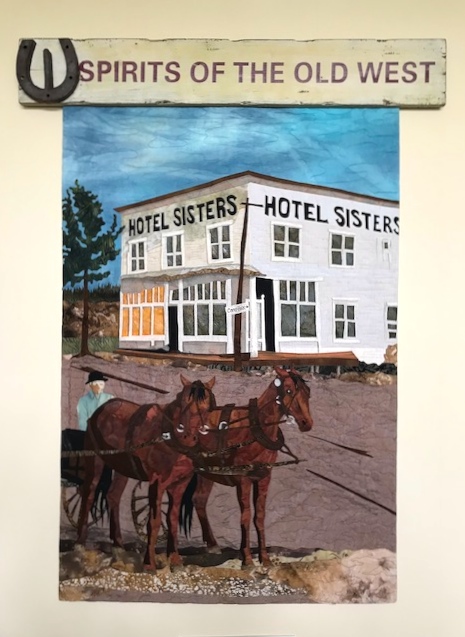 As much as G and I are on the road, we can always count on a bit of home by the quilt artists that live in Central Oregon. All you have to do is Google their names and look at the images. One of the quilting royalty families in our little town is June Jaeger, Jean Wells Keenan and Valori Wells Kennedy. Jean and Valori co-own the Stitchin Post which hosts a gallery exhibit of artistic quilts and this month the featured quilter is June Jaeger, sister to Jean and aunt to Valori. June is not only an artist, but an instructor and I have a wonderful quilt of Enzo which I made during her "Best Friends" class. Last year during the Sisters Outdoor Quilt Show, I was able to purchase a wall hanging made by June which is truly amazing and speaks to the history of our little town and the legacy of their family.