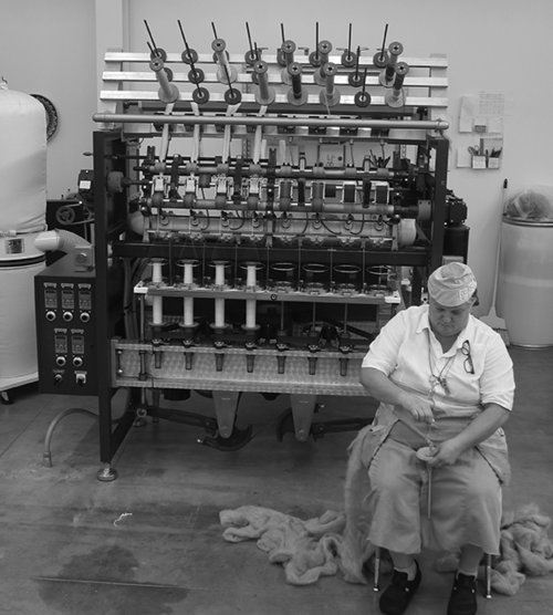 The works in this exhibition document Frau Fiber's on-going battle with contemporary apparel manufacturing. In video, photography and artifacts, the exhibition makes space to witness Frau Fiber's attempt to spin yarn, knit a tube sock and knit a sweater as fast as a machine. This series of textile productions are inspired by the folk lore of the ultimate working-class hero: John Henry. Henry, who was immortalized in verse and myth in the 1800’s, fought and lost a valiant battle against the drill machine that took his life and ultimately replaced the jobs of tireless railroad workers.