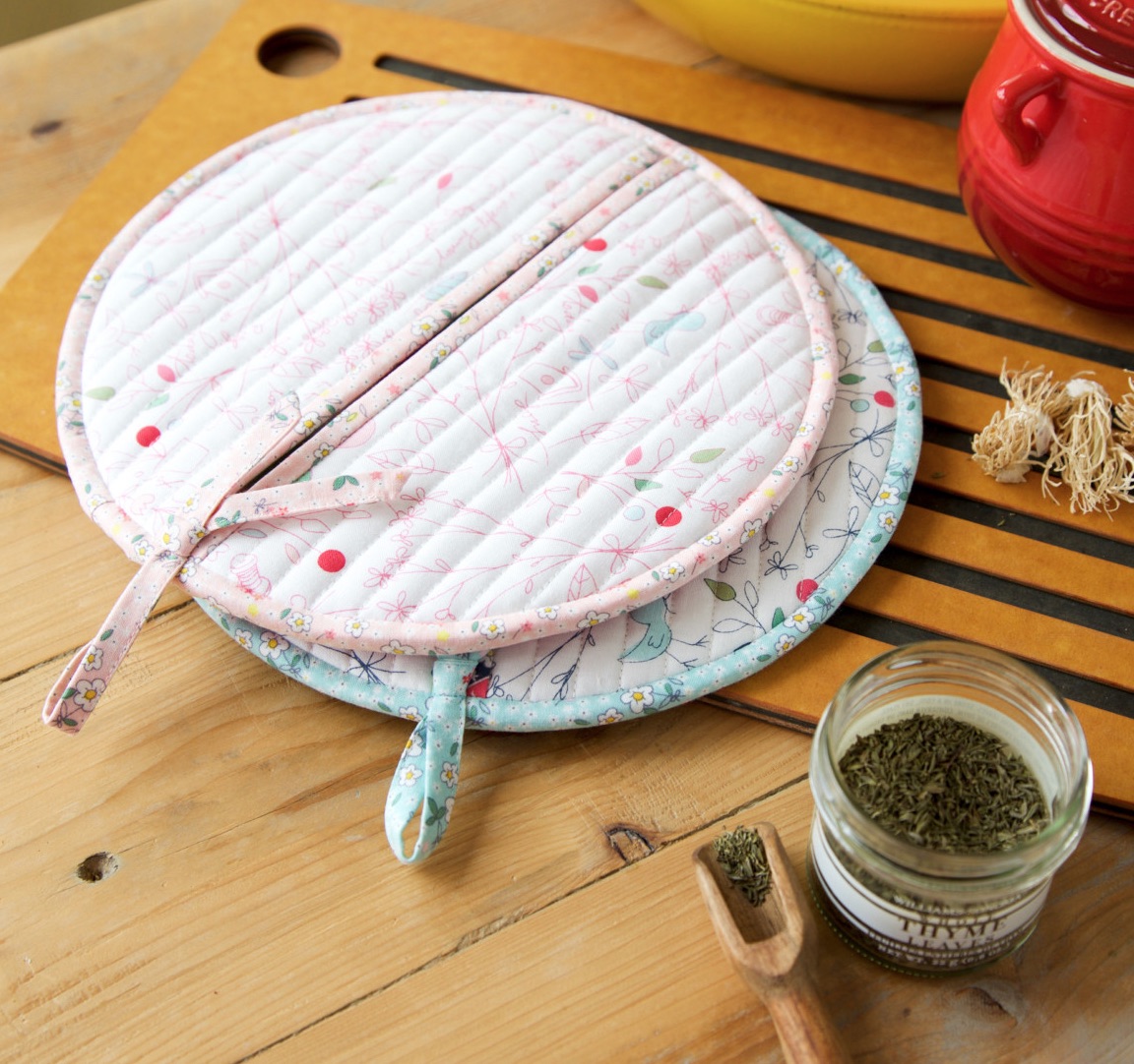 Minki from MinkiKim.com and WeAllSew has a fun twist on a traditional kitchen item. Are you tired of making square or rectangle potholders? How about a circle potholder this time? Minki made a pair and keeps using them as trivets, potholders, and kitchen decor. They are a very simple and a fast project so you can finish in a evening. It's a perfect gift too!