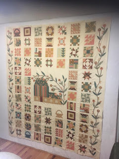 She also shares photos from the Sunday Sew and Sews, some of which feature different settings and designs. For example, Terri's quilt (right below) from the Sunday Sew and Sews, used the Patchwork Barn Crystal Farms Kit and enlarged the background. Donna's quilt (left below) created her own home in the center, and that's Barbara's top in the middle.