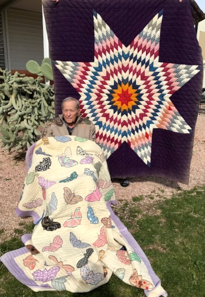 G's Aunt Pauline always put the butterfly quilt on his Uncle Curtis's bed...the hand quilting and stitching in these quilts is amazing. Just to know the amount of time to finish hand piecing and quilting makes me ashamed of how I carry about my UFO's! And, that Lone Star...OMG is it ever amazing...hand pieced with every point perfect and then hand quilted!