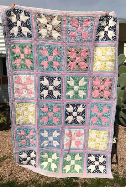 Now that I am a quilter and know the thought, love, and work that goes into making a quilt, I hope there will be generations who follow me that will remember how much I loved making quilts. This past week when we arrived in the desert of Arizona, I was humbled to be gifted three quilts from G's uncle who was the caretaker of his sister's quilts after she passed away. With nine kids, everyone learned to help on the farm, but the girls learned to stitch. Pauline, whose quilts I received, is second from the left. I feel honored to be the next caretaker of this piece of family history.