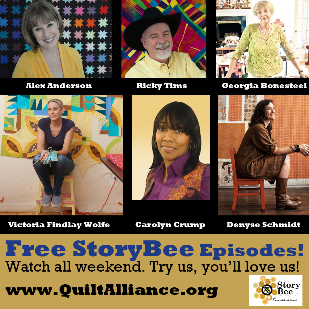 After you've finished watching all of the FREE shows here at TQS this International Quilting Weekend, the Quilt Alliance has a present for YOU! (Actually six presents!) To celebrate National Quilting Day, they will be making six of this StoryBee interview shows public for the weekend!