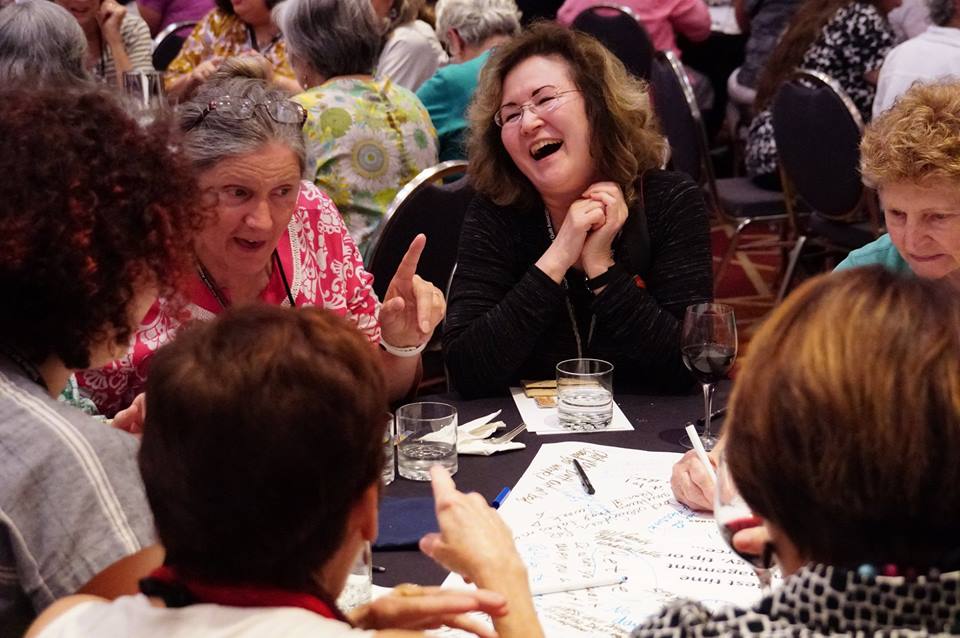 The conference opened Thursday, April 25, with an evening ice breaker that let members at each table brainstorm about a specific topic, such as creative rituals, innovative tools, or favorite podcasts. Mel Beach’s compilation of all 18 Table Topics allowed everyone to share the collective wisdom.