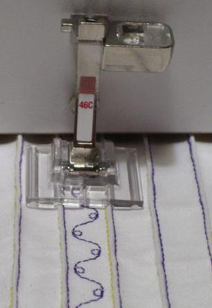We all have favorite feet for our machine. Here's one from Bernina that allows you to fold the bias tape and apply it at the same time. It is the Bernina Binder Attachment #84 used in conjuction with Foot #94. What's your favorite accessory?